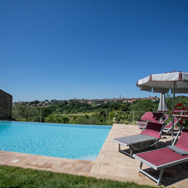 La struttura è circondata da un esteso oliveto, con un’unica e incomparabile vista sulla città di Siena. All’interno, la casa contiene mobili accuratamente selezionati, compresi gli oggetti appartenenti alla famiglia del proprietario.